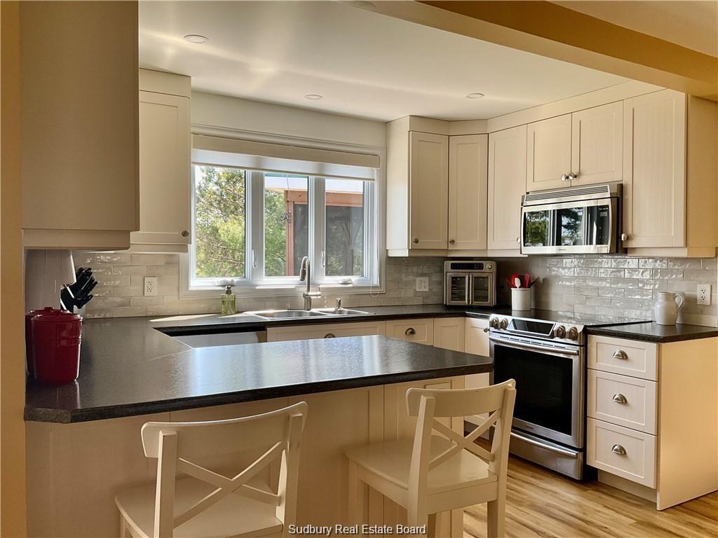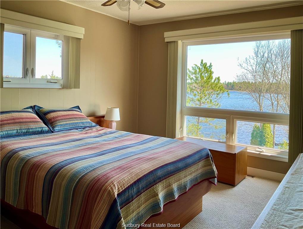 Prime recreational year-round waterfront property situated on the West Arm of lake Nipissing. Urban comfort in a relaxing spectacular private retreat with nature at your doorstep and fantastic views from every window. Outdoor entertainment on your large lakeside deck, screened-in gazebo, sauna and 2 large aluminum floating docks. Some of the major upgrades include, kitchen, bathrooms, metal roof, electrical, heat pump (certified low temperature operation to -25 degree C.), septic system, underground landscape irrigation system with lake-side pump, docks and double attached garage. Enjoy swimming, canoeing, kayaking, boating, and fishing on over 65 kilometres of navigable waterway. Crown land across the street with snow shoe trail. Only 1 hour from Sudbury and 3 hours from Canada's Wonderland.